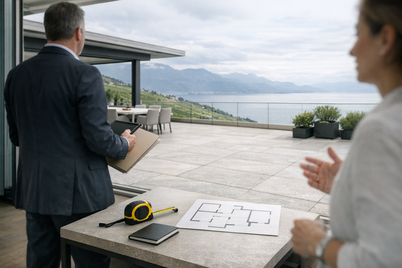« Je vends un appartement sur la Riviera vaudoise avec une grande terrasse. Tout le monde me dit que “ça vaut de l’or”. Mais je ne veux pas me tromper sur le prix. Comment estimer correctement la valeur de la terrasse, sans surévaluer et bloquer la vente, ou sous-évaluer et perdre de l’argent ? »